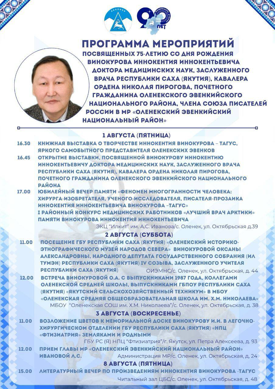 ПРОГРАММА МЕРОПРИЯТИЙ ПОСВЯЩЕННЫХ 75-ЛЕТИЮ СО ДНЯ РОЖДЕНИЯ ВИНОКУРОВА ИННОКЕНТИЯ ИННОКЕНТЬЕВИЧА