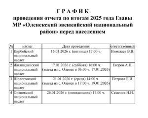 График проведения отчета по итогам 2025 года Главы МР «Оленекский эвенкийский национальный район» перед населением