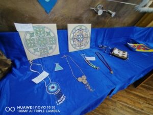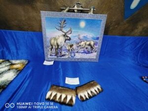 Посетители смогут увидеть работы жителей района всех возрастов, имеющих особые потребности здоровья. Взрослые авторы представили композиции ручной работы: среди них выделяется творение Маргариты Прокопьевны Ивановой «Оленевод на оленьих упряжках», оригинальное гипсовый панно и настольная игра «Перегон оленей» из натуральных материалов (кости и дерево) Сарданы Мартовны Христофоровой, а также изящные меховые изделия Галины Васильевны Сергеевой.